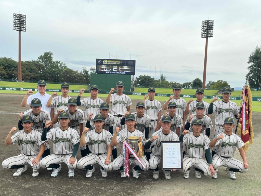 鶴東ブログ 2024.10.15 秋季山形県大会優勝 野球部 第77回秋季東北地区高等学校野球選手権大会山形県大会で野球部が見事優勝を飾り、昨年に引き続き2連覇を達成しました。 現在は福島県で開催されている第77回秋季東北地区高等学校野球選手権大会に出場しており、初戦で岩手県代表の久慈高校に勝利し、次戦は花巻東高校と対戦します。 春の選抜甲子園大会に繋がる戦いです。 野球部の皆さん山形県大会での優勝おめでとうございました、また、東北大会もベストを尽くしてください。 BLOG 2024.08.11野球部初戦突破! 2024.06.25男子卓球部 梅 木 大 智さんが日本代表に選出されました! 2024.06.25アメリカ・コロラド州 ユースインアクション(青年訪問団)が来校しました! 2024.06.24インスタグラム開設しました 学校生活 2024.10.22進学ガイダンス 2024.07.31東北大学オープンキャンパス 2024.07.30甲子園大会壮行式 2024.07.24「キャリア講話」(グローバルセミナー) 部活動 2024.10.15秋季山形県大会優勝 野球部 2024.09.06国際大会出場報告 卓球部男子 梅木大智さん 2024.08.27U―18 野球日本代表 侍ジャパンに櫻井 椿希さんが選出されました。 2024.08.27甲子園大会報告会(野球部) 進学情報 2024.02.29大学合格速報! 2023.12.273年生進路状況 速報! 2023.01.13祝合格!神奈川県警察 2022.03.29令和四年度 国公立大学・難関私立大学合格校一覧 在学生・保護者向け 2023.06.12特進3年生保護者対象進路ガイダンス 2021.01.18卒業証書授与式のご案内 2020.11.25修学旅行の様子(1日目) 2020.08.038月行事予定 中学生・保護者向け 2024.10.29女子サッカー部 体験入部 中止のお知らせ 2024.10.28女子サッカー部 体験入部 開催日程追加のお知らせ 2024.10.28女子バスケットボール部 体験入部について 2024.10.2110月26日(土)オープンキャンパス 詳細について