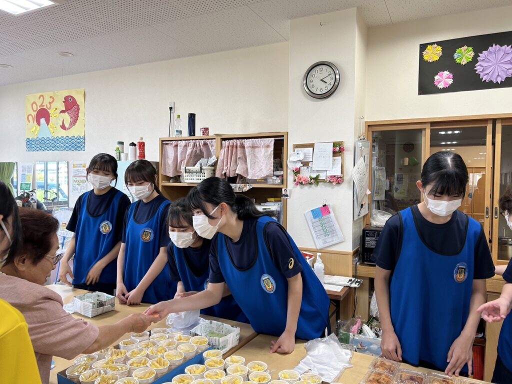 「デイサービスセンターみどり」~涼風まつり~ へ鶴東奉仕部がボランティア活動で参加させていただきました。唐揚げやポテト、焼きそばのパック詰めと販売をしました。パック詰めは量や個数を均等にするのが難しかったです。