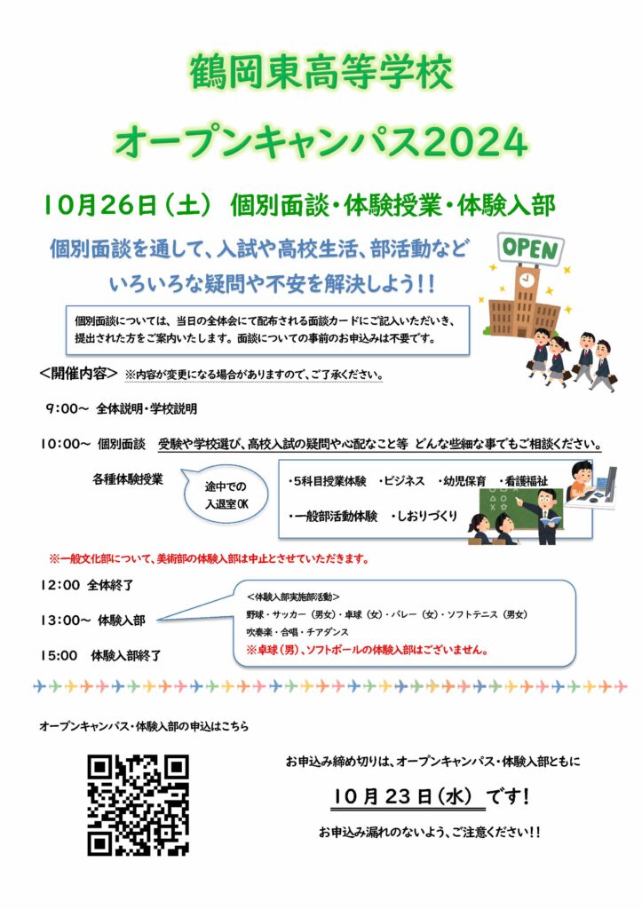 いよいよ今週末となりましたオープンキャンパスについて、詳細を
