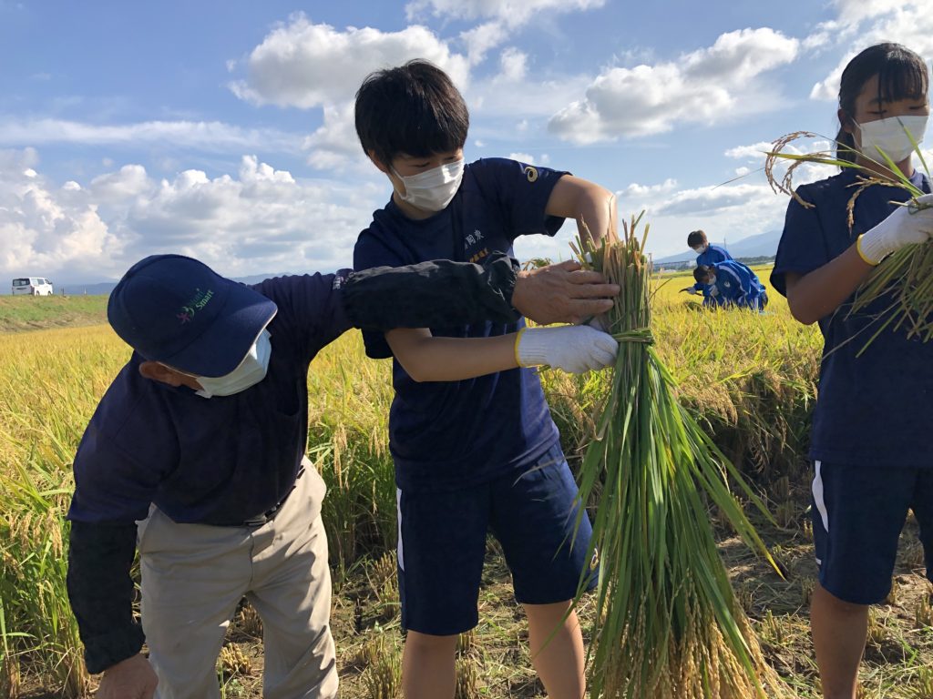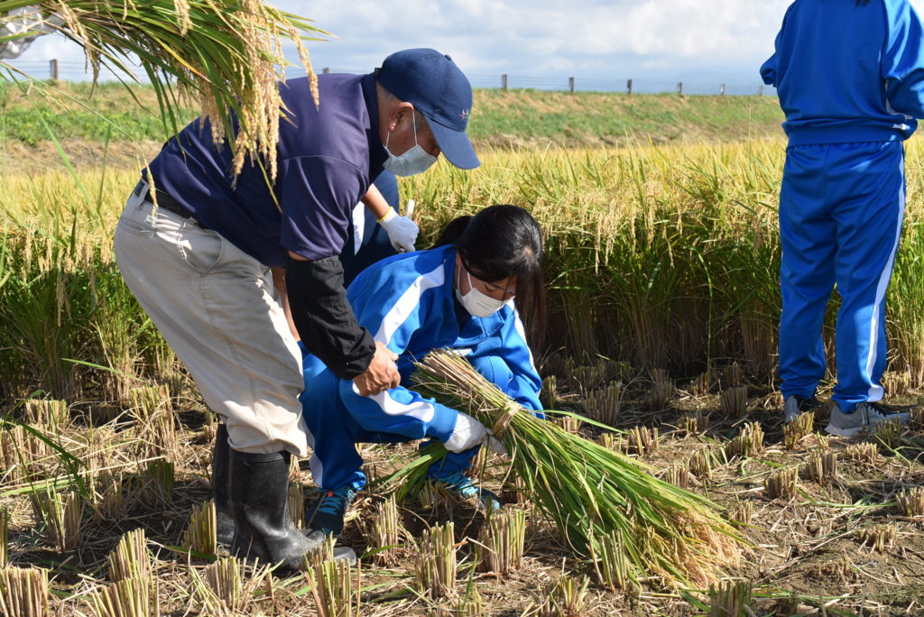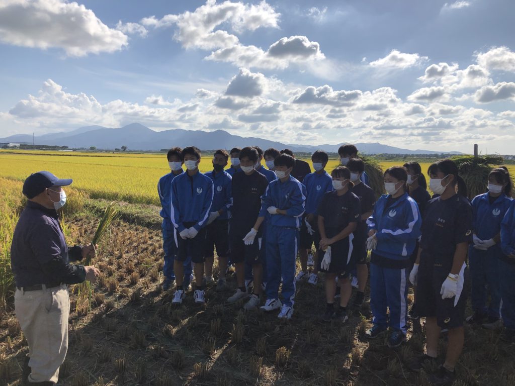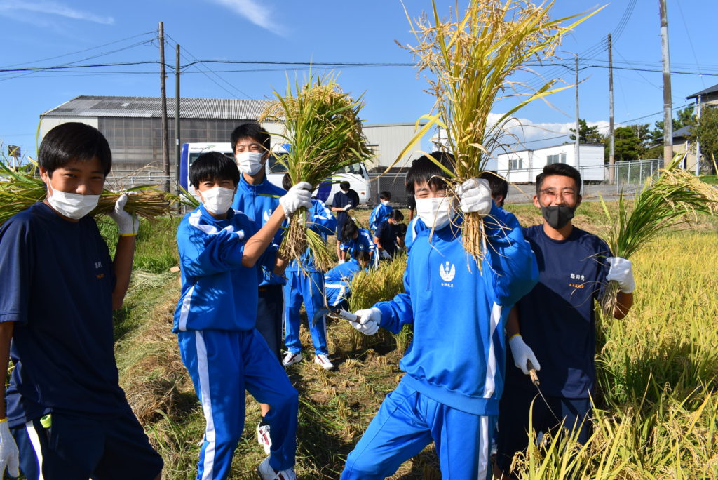 令和3年9月14日(水)LHR(ロングホームルーム)の時間に、本校の実習田にて稲刈りを行いました。