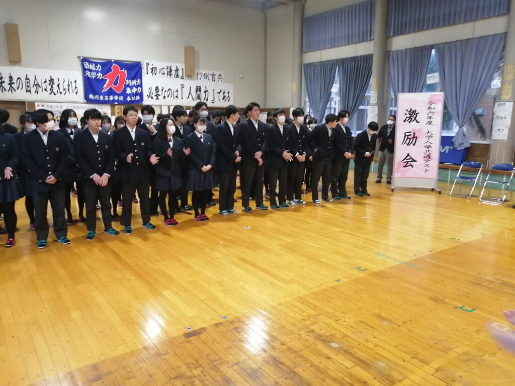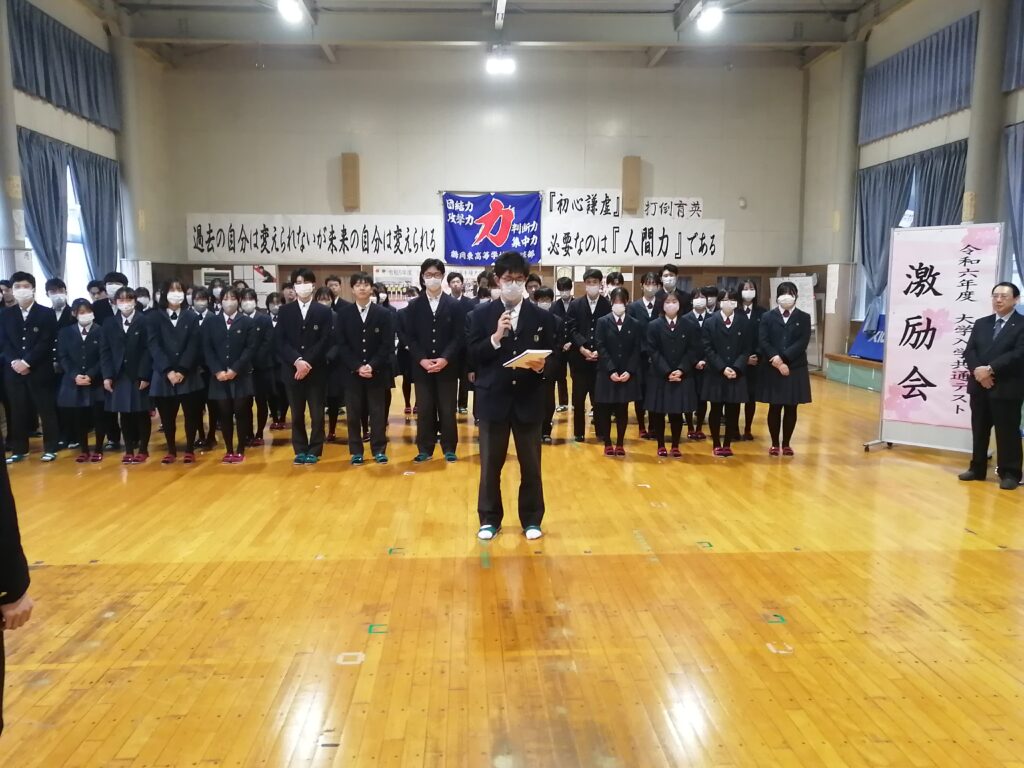 1月13日から始まる大学共通テストを受験する特進コース3年生に向けて、激励会が行われました。