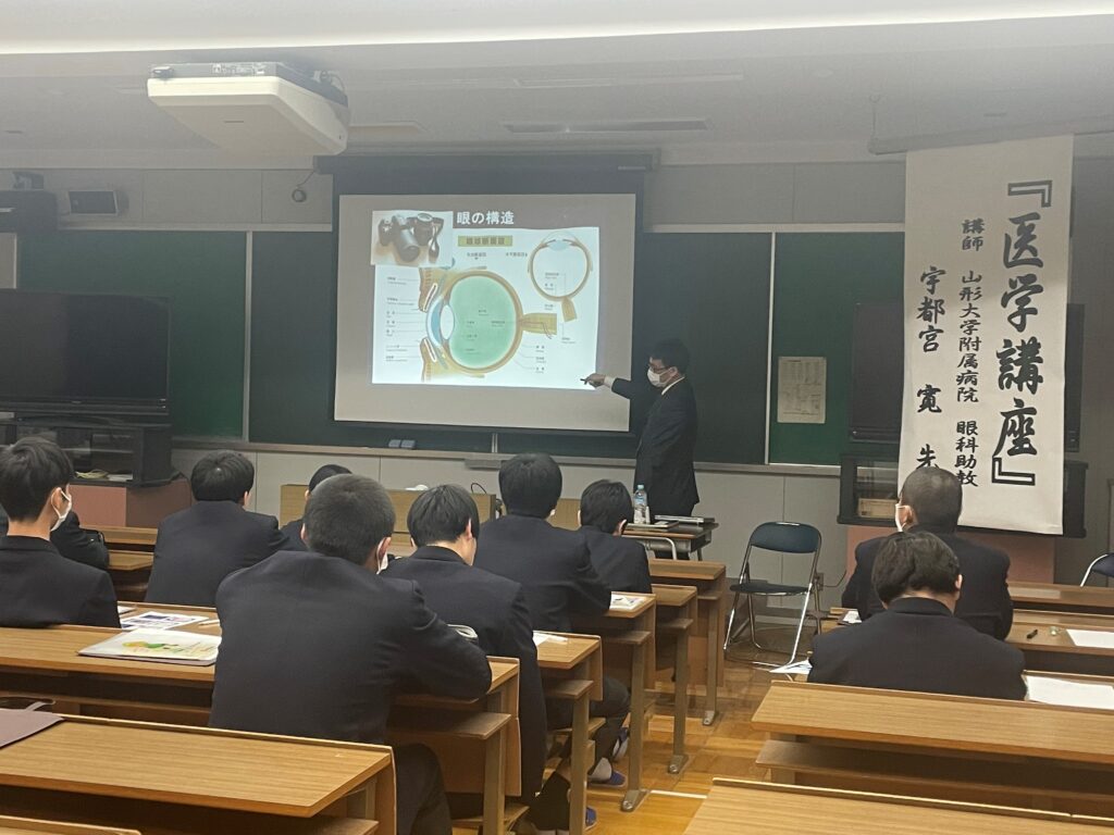 特進コース1年生を対象に山形大学附属病院眼科助教の宇都宮寛先生をお招きして医学講座が行われました。