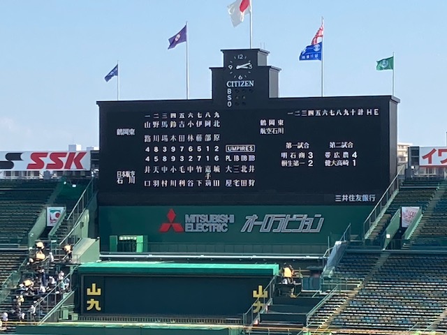 阪神甲子園球場で8/16(日)3試合目に日本航空石川高校(石川県)と試合を行いました。