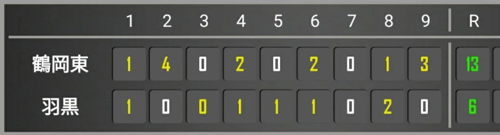 鶴岡東高校 6 - 0 庄内合同(庄内総合高校、庄内農業高校)
